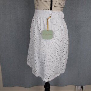 Rye Grass | NWT White Cotton Eyelet Lace Elastic Waist Skirt | Size 6