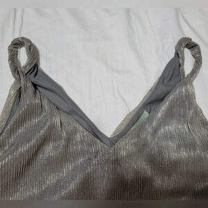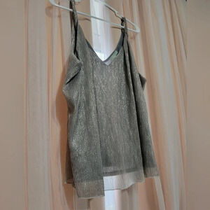Rye Grass Twisted Strap Flowy Metallic Tank Top, Double V-Neckline, Size XL, EUC