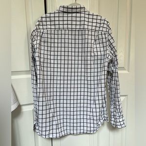 This men’s plaid button down shirt is in good shape. The pattern is a black and white casual checks. It is a slim fit style.