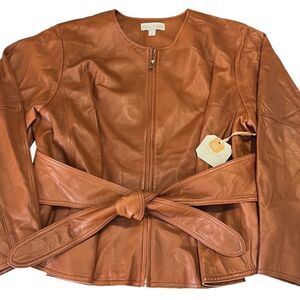 RyeGrass Burnt Brick Zip Up Front Tie Leather Jacket Size 1X NWT