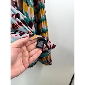 RyeGrass Geometric Pleated Colorful Long sleeve Blouse Size Extra Large