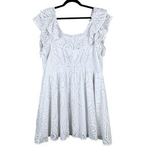 Ryegrass NEW Embroidered Eyelet Dress Sz 1X White Flare & Flare Cotton Ruffle Feminine