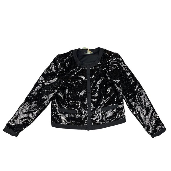 Ryegrass Thick Fish Scale Black Sequined Jacket Button Front Medium New with tag