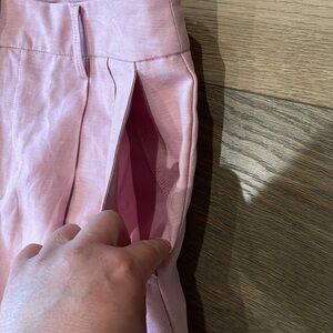 Wide-leg pants by the brand Ryegrass, in a pale rose or pink color. Cute dressy, sophisticated trousers, suitable for various occasions such as business, casual, formal, or party settings.