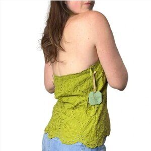 Ryegrass Wild Green Embroidered Eyelet Halter Top Womens 8 Chartreuse Blouse