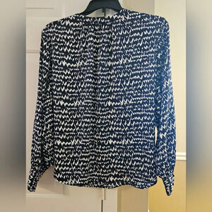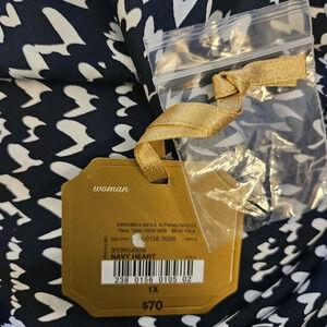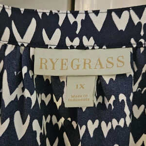 Ryegrass Womens Blouse Navy Heart Pattern 1X Plus Dize NWT. Pics show neckline and sleeve details.