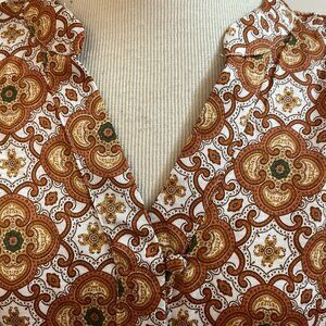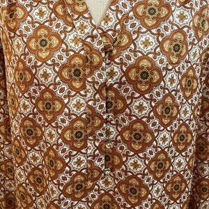 Ryegrass Women's Button Up Blouse Tunic Size L Button Cuffs MOD Paisley Print