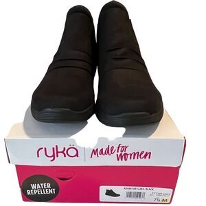 Ryka Black Niah Animal Water Repellent Slip On Wedge Ankle Boots Size 7.5 NIB
