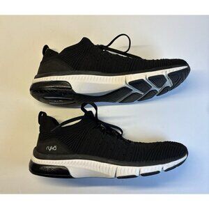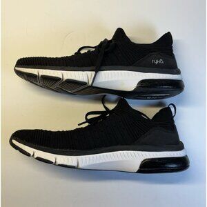 Ryka black sneakers these have a sock style. They have lots of stretch, breathable no stains or holes smoke free, pet friendly home hand washed air. Dried laces are good no box.