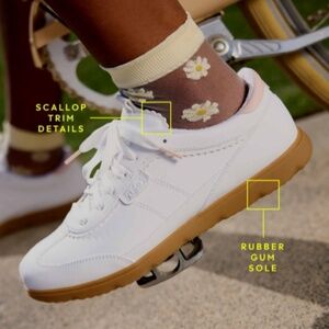 Make getting dressed and feeling comfortable look easy in these casual sneakers for women with a now-trending gum sole and stylish scalloped trim.
