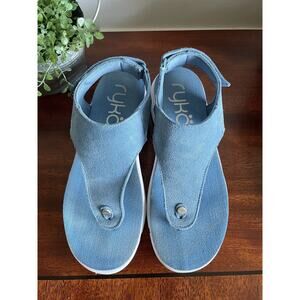 Ryka Margo Comfort T Strap Sandal Blue Suede Size 7 M