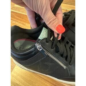 Ryka Mid Top Sneaker, Laces with Zip CLosure Black Canvas/LeatherSize 8 1/2 wide