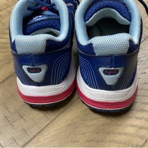 Running, Walking Athletic Sneakers, Blue with pink, good used condition, size 6.5. B43.2