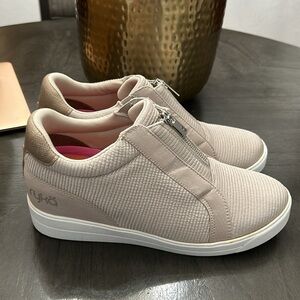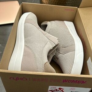 Ryka Vibe Women's Sport Casual Short Boot. Give every step a lift in this everyday sneaker with a hidden wedge and our powerful Made for Women fit. BEST FOR: Everyday wear. PERFORMANCE TECH: Exceptional cushioning throughout for standout comfort. MADE FOR WOMEN FIT: Designed for a woman’s unique foot shape, muscle movement, and build with a narrower heel, roomier toe, and softer foot cushioning. MATERIALS: Soft fabric with durable faux leather + Padded collar for extra cushioning. CLOSURE: Slip-on fit with center zip for easy on/off. INSOLE: Surround Fit insole with cushioned EVA heel cup surrounds your foot in comfort. OUTSOLE: Flexible, durable outsole with hidden wedge for extra lift.