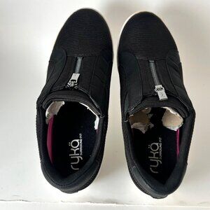 Ryka Women Black White Wedge Slip-On Zip Sneakers Size 8