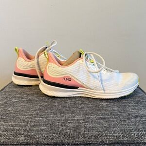 Comfortable and stylish athletic shoes. Features a white and yellow design. Perfect for workouts and casual wear.
