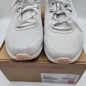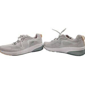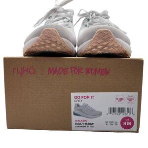 Ryka womens Go For It Re-Zorb walking sneakers Nimbus Gray 9 M pink trim mesh. Synthetic and leather upper. Insoles and laces included. Excellent pre-owned condition with no stains or tears. Please see 3rd picture for flaw at front.