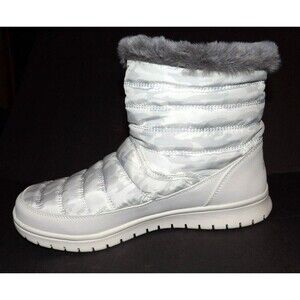 Ideal for travel, casual, activewear, and workwear, these boots are water-repellent and have a cap toe to keep your feet dry and comfortable. The W shoe width and lightweight features provides a comfortable and snug fit for every adventure. Get your Ryka Women's Suzy Winter Booties now and stay stylishly warm this winter! The top of the box does have a dent (pictured) but they do come in the box with original packaging.