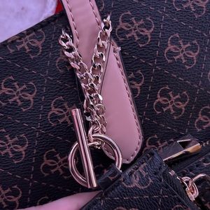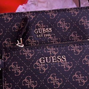 Guess tote, never used, new! Brown with guess logo all over it, guess logo inside as well. Four pockets in total, tiny wallet with it, beautiful bag!