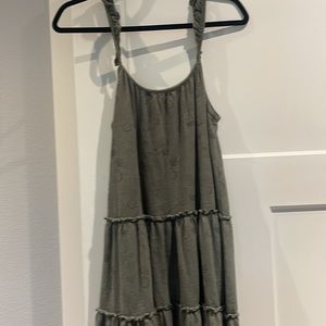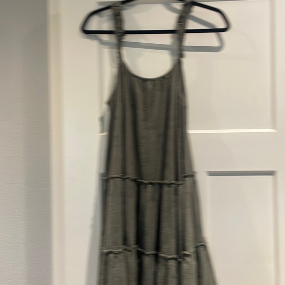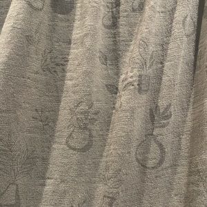 Bought for family pics which were then postponed due to covid. There’s maybe a small pull in the fabric, I tried to take a picture. It’s not noticeable and I could be imagining it but I try to include any potential issue. Has a plant type print on it, very forgiving fit.