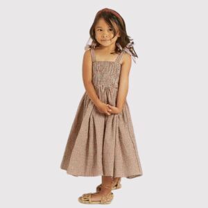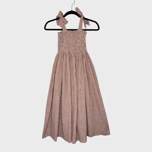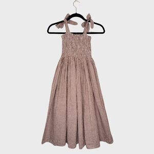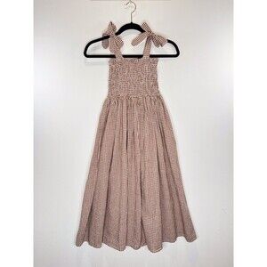 Rylee + Cru Girls Dress Brown Ivy Redwood Gingham Maxi Smocked Fit Flare 10-12Y