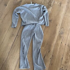 Cozy ribbed set with long sleeves and pants. Perfect for comfort and style.