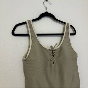 Rylee + Cru Lace Up Front One Piece Swimsuit Ribbed Sage Green Size XL Women’s