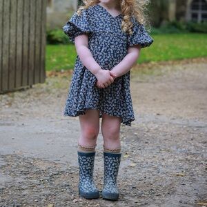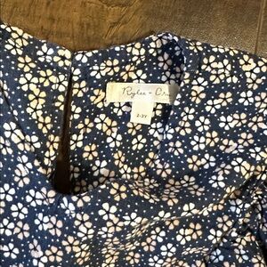 Adorable navy blouse with floral pattern. Includes matching bow. Perfect for stylish outings. Worn once. See separate listing for matching rain boots.
