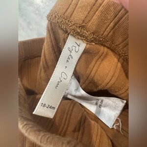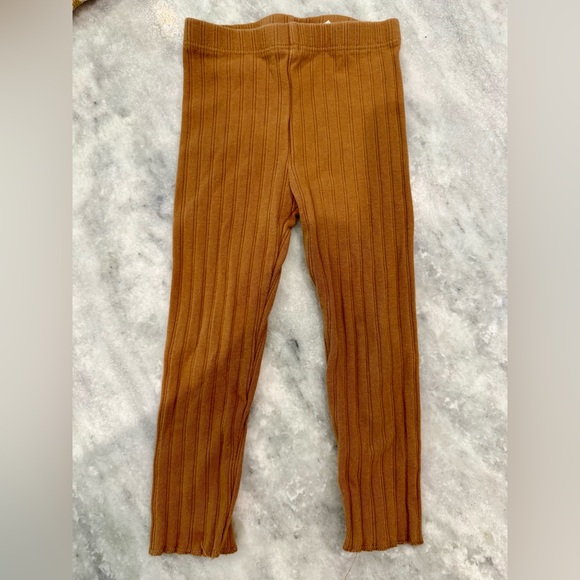 Ribbed knit leggings in a rich rust hue. Soft stretch fabric for easy movement. Slim fit with gentle waist. Simple, versatile style for layering.