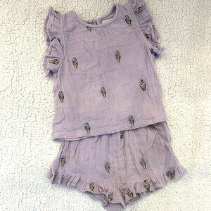 Bloomer set with tie top in a stripe pattern from Rylee + Cru. Light wash wear, no other issues. Size 12-18 months.