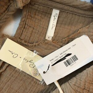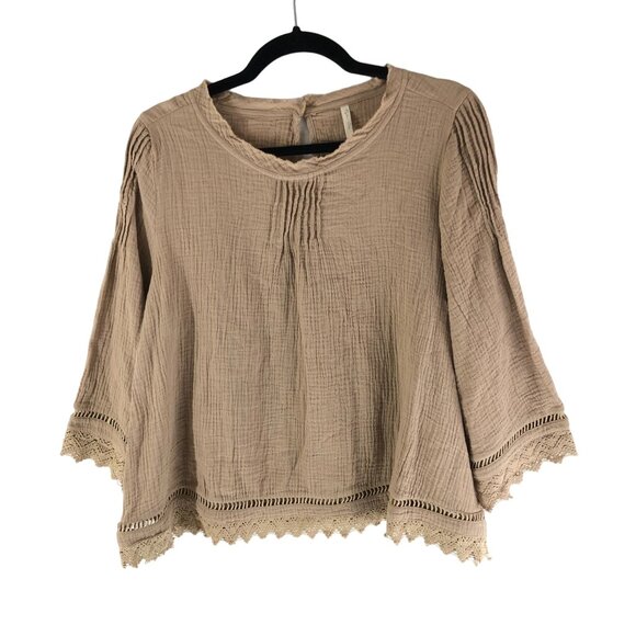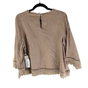 Rylee + Cru Womens Kalo Blouse Top Crinkled Crochet Trim Sand Brown S
