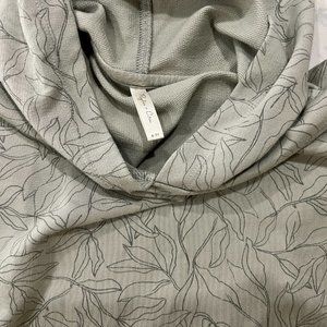 Rylee + Cru short sleeve hooded knit sweatshirt (not fleece lined). Pretty sage green with floral pattern. Size 6-7. EUC, worn once and washed.