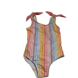 Rylee Faith Designs Girls 4 Swimsuit One Piece Rainbow Stripe Bow Shoulder NWT