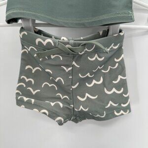Rylee and Cru Swim Set 3-6 Months Rashguard and Swim Trunk Bottoms Green Waves