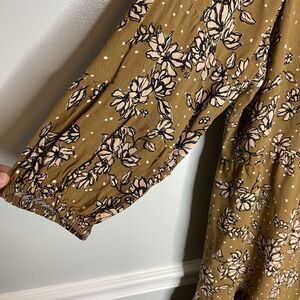 Ryllace Peasant 100% VISCOSE Mustard Promenade Tiered Floral Dress Plus Sz 20 1x