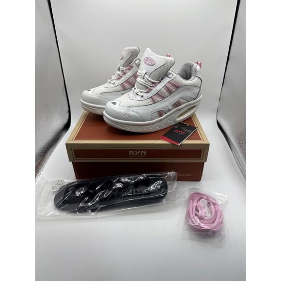 This is a new in box pair of Ryn Walking Science White Pink Womens Shoes. Shoes are size 6. Will ship next available day via USPS Ground Advantage. If you have any questions or concerns please feel free to send a message. Thanks!