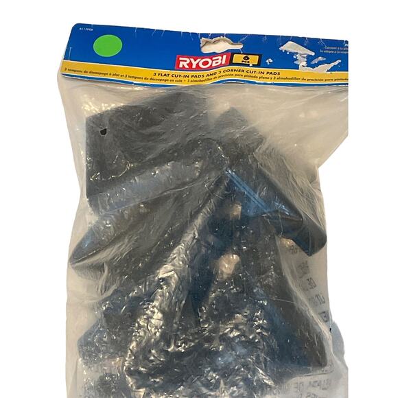 Ryobi 6 pcs= 3 Flat 2 Corner Cut-In Pads Fits Most Brands NWT Paint Like A Pro! Removed from packaging for photos only. Please pictures for details and condition, new in package cut in pads to make that painting project a breeze.