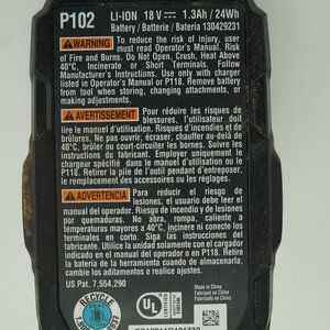Ryobi P102 18V One+ Lithium Ion Compact Battery