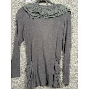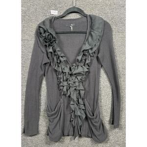 Ryu Chartreuse Ruffle Collar Vintage Inspired Knit Jacket Womens Black Gray Sz S