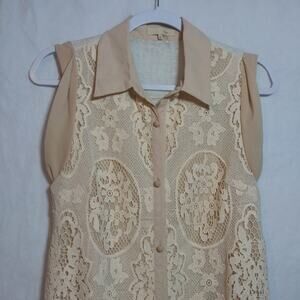 Ryu CottageCore Sleeveless Beige Lace Overlay Button Front Dress Beach Boho Sz S