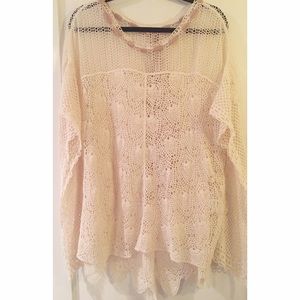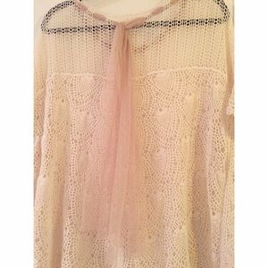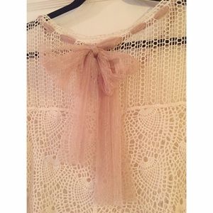 This Ryu crochet cream top was a unique boutique find. Extremely romantic and feminine, the ribbon ties or lays in the back. Just dreamy!
