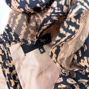 Ryu Dress Womens Small Black & Cream Geometric Ruffled Sleeveless A-Line Night O