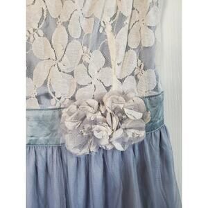 Ryu Lace Girly Ruffled Blue Gray Ivory Tulle Sleeveless Mini Dress NWT, Medium