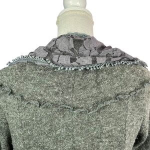 Ryu Lace Ruffle Cardigan M Pockets Waterfall V-Neck Shawl Collar Longline Long Sleeve