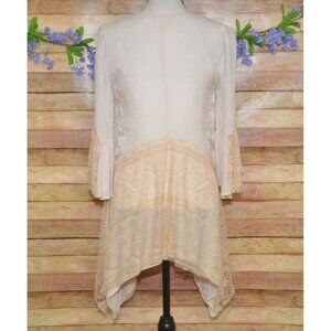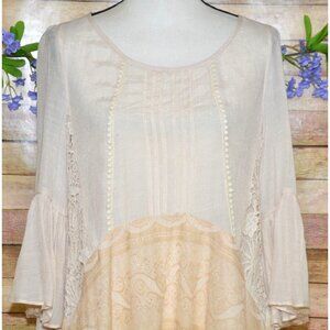 Ryu Ladies S Cream Lace Trim Blouse 3/4 Bell Sleeves Tunic Boho Fairy Cottage