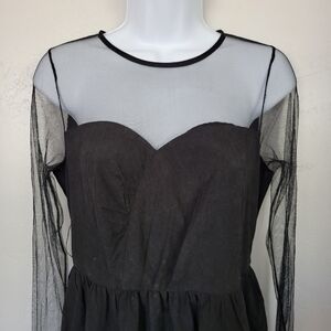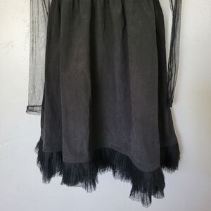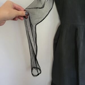 Ryu NWT Medium Black Dress Mesh Long Sleeve Pleated Tulle Trim Sheer Sleeves