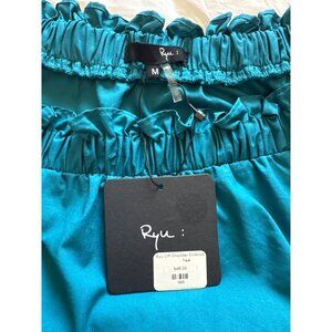 Ryu Off-Shoulder Embroidered Blouse Teal Top M 100% Cotton Boho Chic Stylish NWT