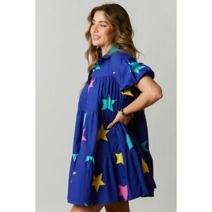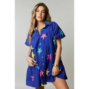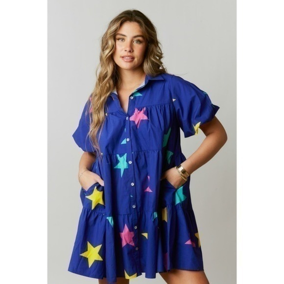 Details: Collared Short puff sleeves Button-down closure Tiered Side pockets Woven