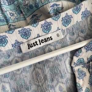 S- Australian Just Jeans Brand White and Blue Flowy Striped Design Blouse
