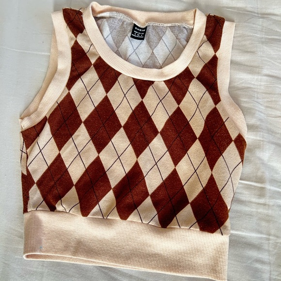 Cute, thin vest pattern top. Great condition. Polyester 95% Elastane 5%